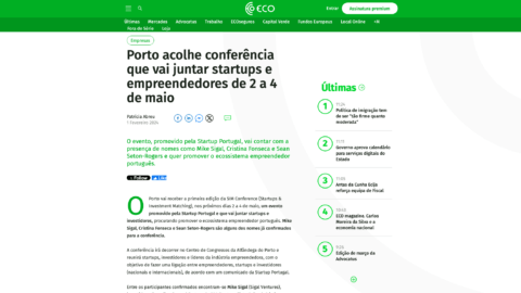 Porto will host the first edition of the SIM Conference (Startups & Investment Matching) from May 2 to 4. Organized by Startup Portugal, this event will bring together startups and investors to boost the Portuguese entrepreneurial ecosystem. Mike Sigal, Cristina Fonseca, and Sean Seton-Rogers are among the confirmed speakers.